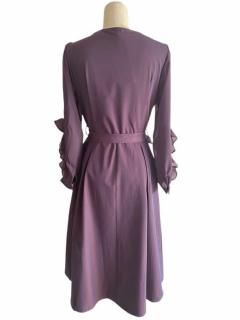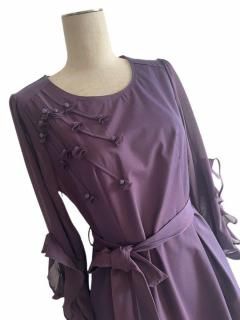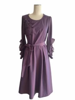 # 鮮やかな大人の魅力を纏う、「モーリスワンピース」 光沢あるパープルカラーが上品な印象を与える、シフォンのお袖がエレガントなアクセントを添えたワンピースです。ストレッチ素材が採用されており、着心地の良さと動きやすさを両立。さらに、シャカシャカとした独特の質感が華やかさを引き立てます。 もちろん、普段のカジュアルなお出かけにもぴったり。程よいシルエットで体型カバーも叶えながら、オシャレな一枚で周囲と差をつけられること間違いなしです。ワードローブにひとつ加えるだけで、コーディネートに幅が広がり、新しい自分を発見できることでしょう。 魅力的な色彩、エレガントなデザイン、快適な着心地。それら全てを兼ね備えた「モーリスワンピース」。大人の女性にこそおすすめしたい、輝く1枚です。 <取り扱い注意事項> - ドライクリーニングをおすすめします。 - 洗濯機や手洗いは避け、形を整えて陰干ししてください。 M身幅45cm ウエスト76cm 着丈110cm L身幅49cm ウエスト80cm 来たけど112cm 素材ポリエステル100%