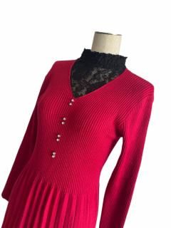 # 冬の特別な日に華やかに輝くリースニットワンピース✨ 胸元にはストレッチが効いたレースが施され、華やかなキラキラストーンが施された、クリスマスシーズンにピッタリなニットワンピースです。ウエスト部分が大きめにデザインされており、着心地も抜群。体型カバーも叶えながら、女性らしいシルエットを演出してくれます。 寒い季節にぴったりな暖かい素材感で、パーティーシーンやデート、イベントなど、様々なシーンで活躍してくれます。着用するだけで、自然と華やかな気分に浸れること間違いなし! さらに、キュートなデザインと快適な着心地の組み合わせは、日常使いにも最適。オンでもオフでも活躍する汎用性の高い一着です。大人可愛いスタイルを叶えたい方にぴったりのアイテムです。 このリースニットワンピースで、特別な日をより一層彩り豊かに演出しませんか?自信を持ってオシャレを楽しみたい方にオススメします。 <取り扱い注意事項> 洗濯時はネットを使用し、優しく手洗いをお願いします。色移りにご注意ください。 身幅39cm 平置き伸縮性あり ウエスト78cm 素材ポリエステル100%